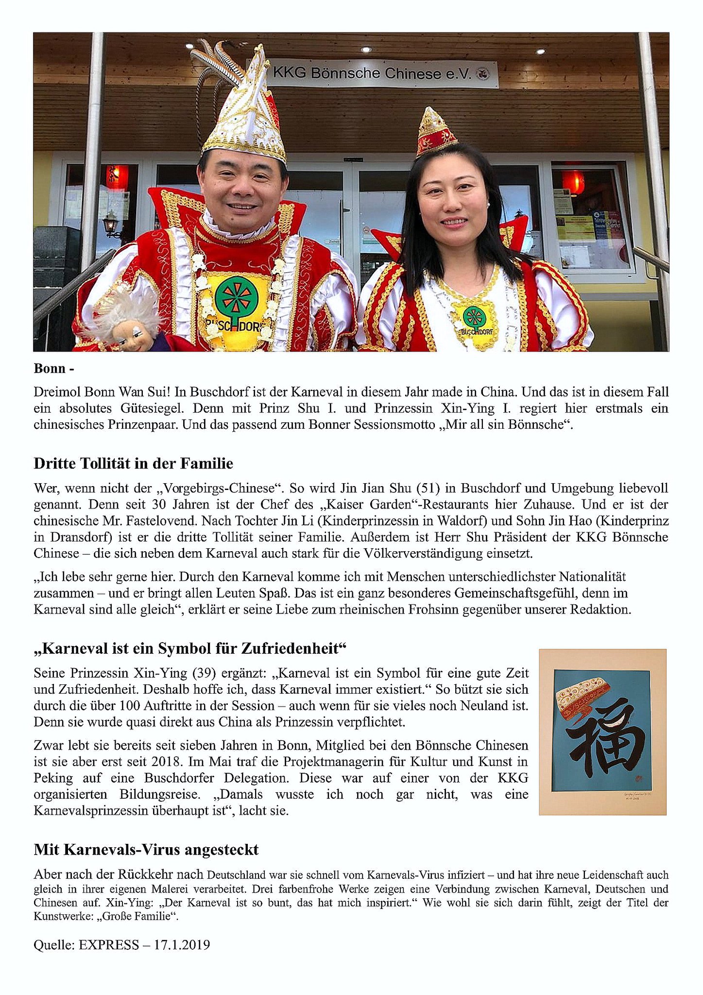 Nach einem erfolgreichen Sommerfest, bei dem Wir unser neues designiertes Prinzenpaar der Session 2018/2019 vorgestellt haben, hier nun der Artikel aus dem heutigen General Anzeiger.
